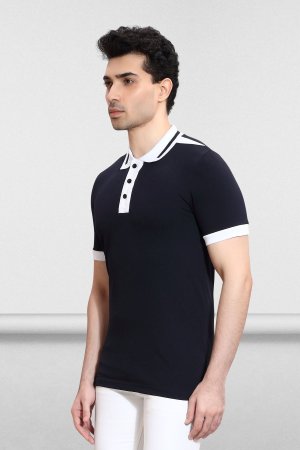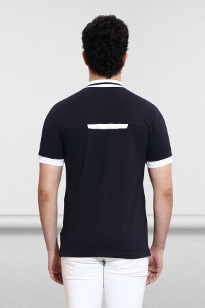 Polo Shirt in Stretch Cotton-Pique with Shoulder Knife Panel - Black