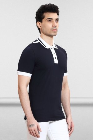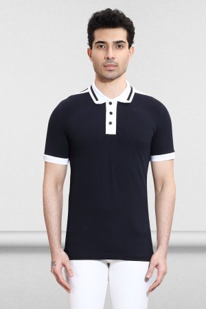 A polo shirt by SAKOBA, cut to a regular fit with short sleeves. Created in stretch cotton, this athletic top is constructed with premium washed fabric. The knitted placket, collar and cuffs add pops of contrast to this polo shirt.